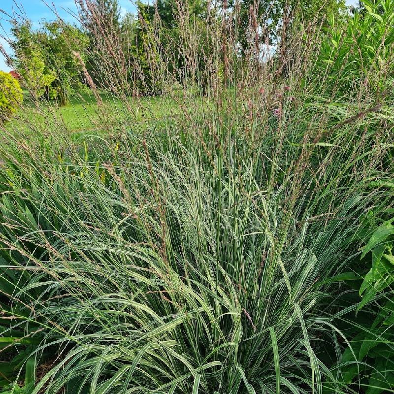 Daugiametis apie 1,2m. aukščio varpinis augalas. Labai įdomi veislė. Žydi VIII-X mėn. rusvos spalvos varpomis. Lapai su baltais dryžiais. Rudenį stiebai įgauna rausvai geltonus atspalvius. Geriausiai auga saulėtoje vietoje, dirvai nereikli.