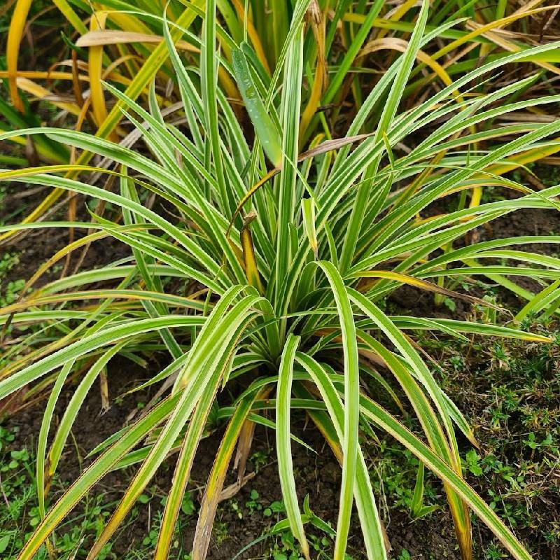 Daugiametis, visžalis, apie 30–40 cm aukščio augalas. Lapai siauri, žali su ryškiu baltu pakraščiu, švelnūs, išsidėstę tvarkingu, tankiu keru.